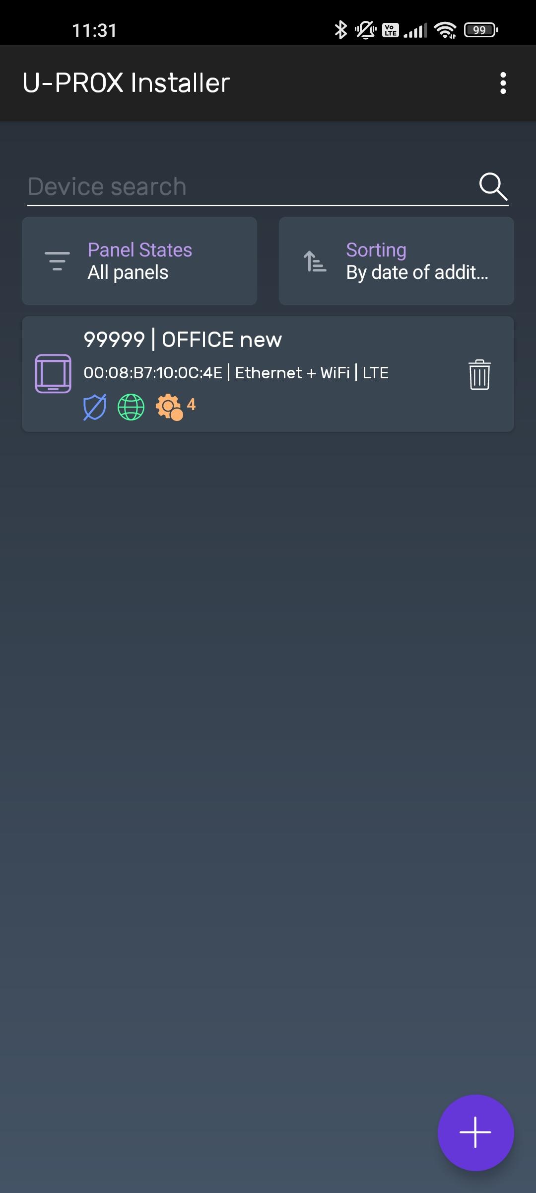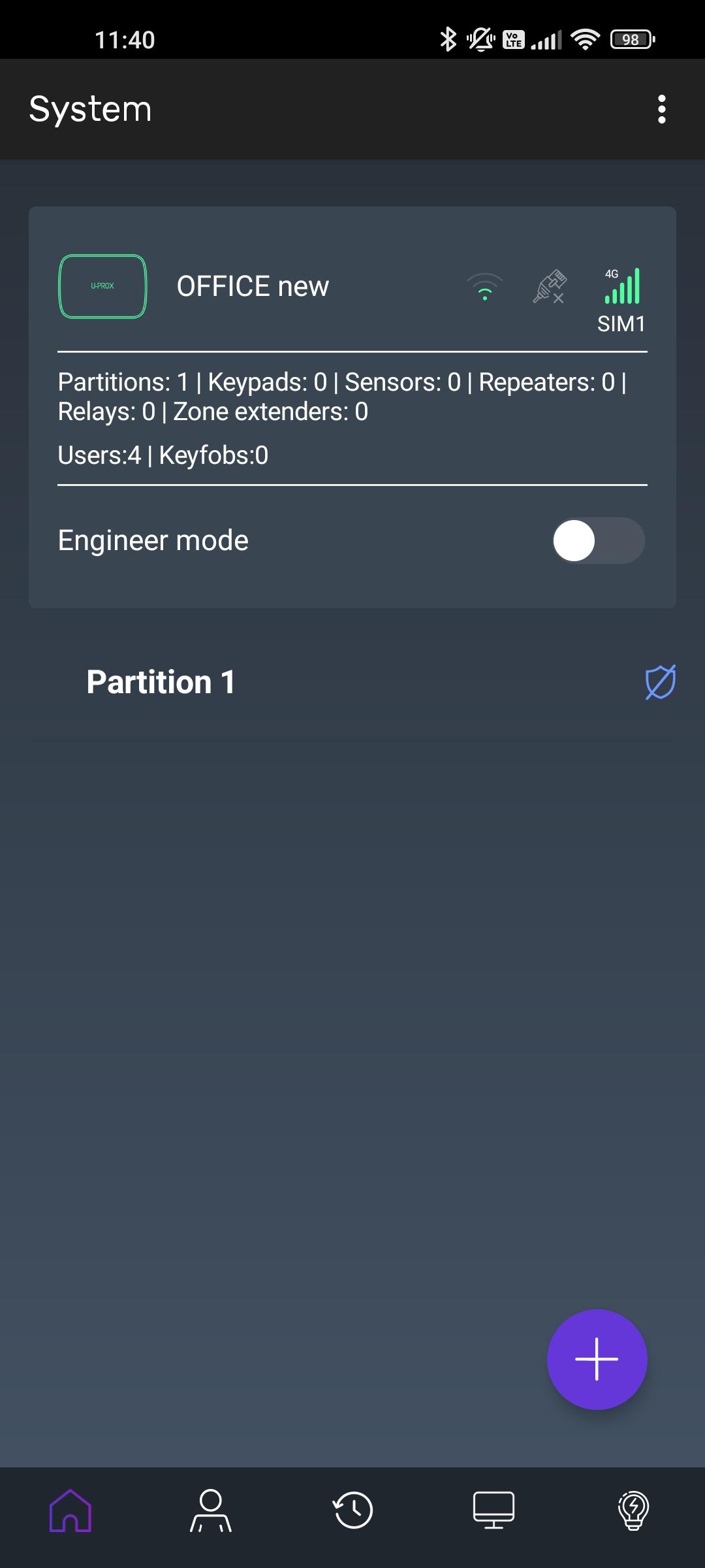 The U-PROX Home application is used to control the U-PROX security system. The application implements the required set of functions:
