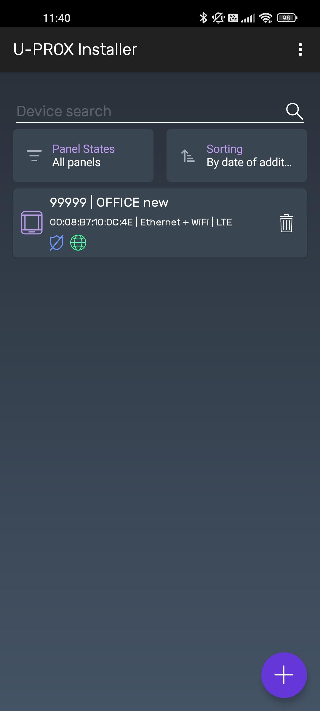 Search and connection to the access point can be performed both locally from the U-PROX Installer mobile application via BLE (Bluetooth Low Energy) channel and remotely