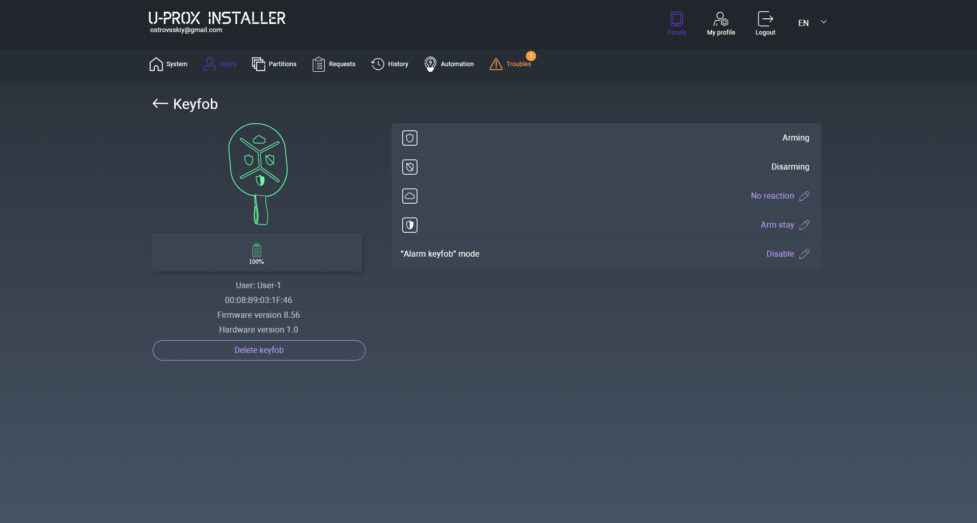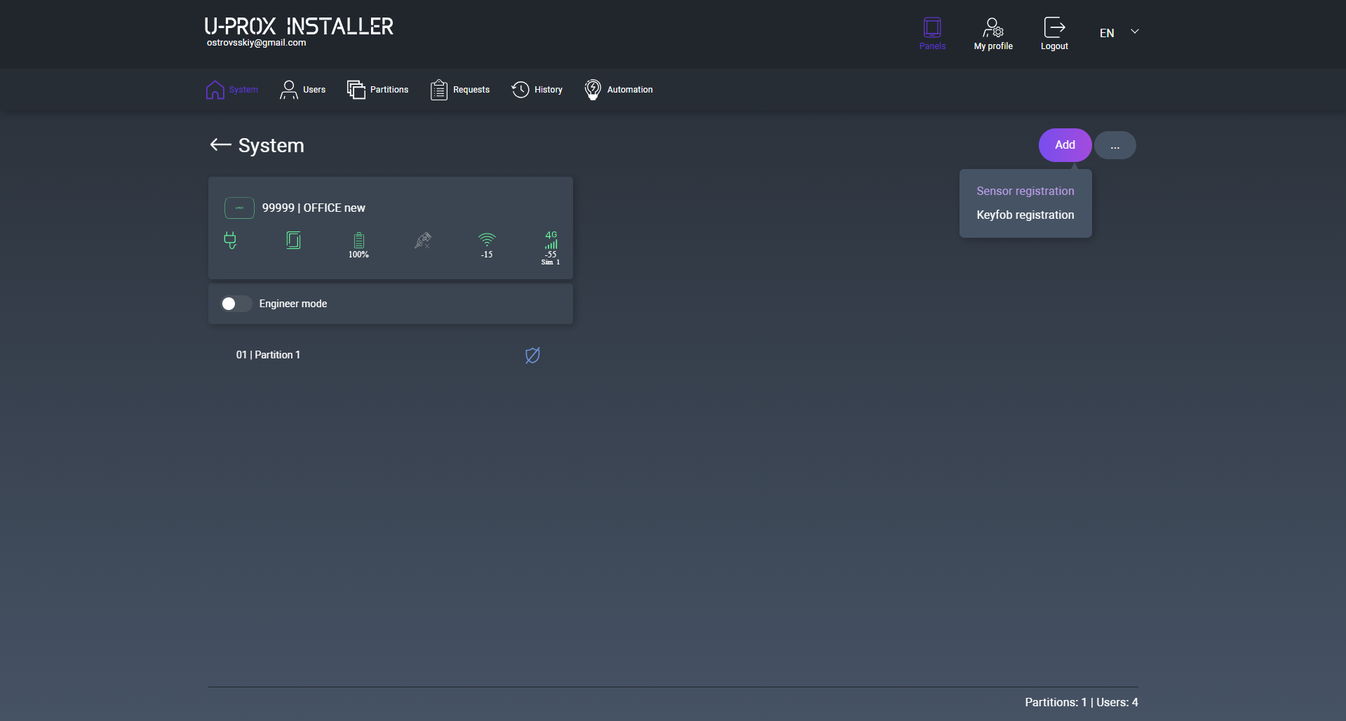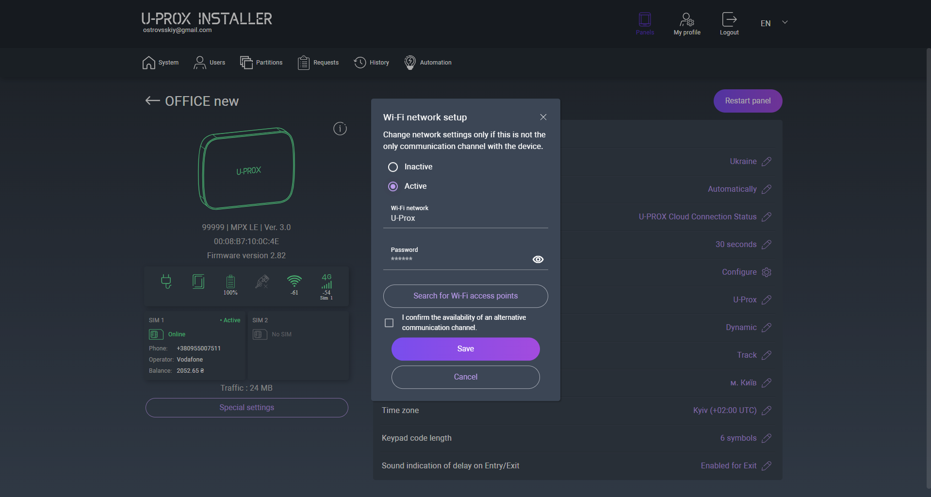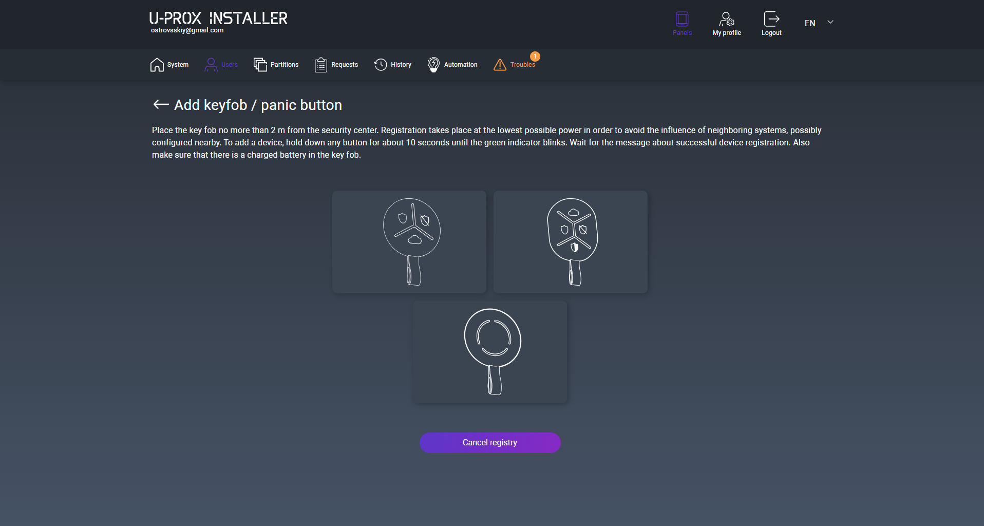 from the U-PROX Installer WEB web portal or the U-PROX Installer mobile application.