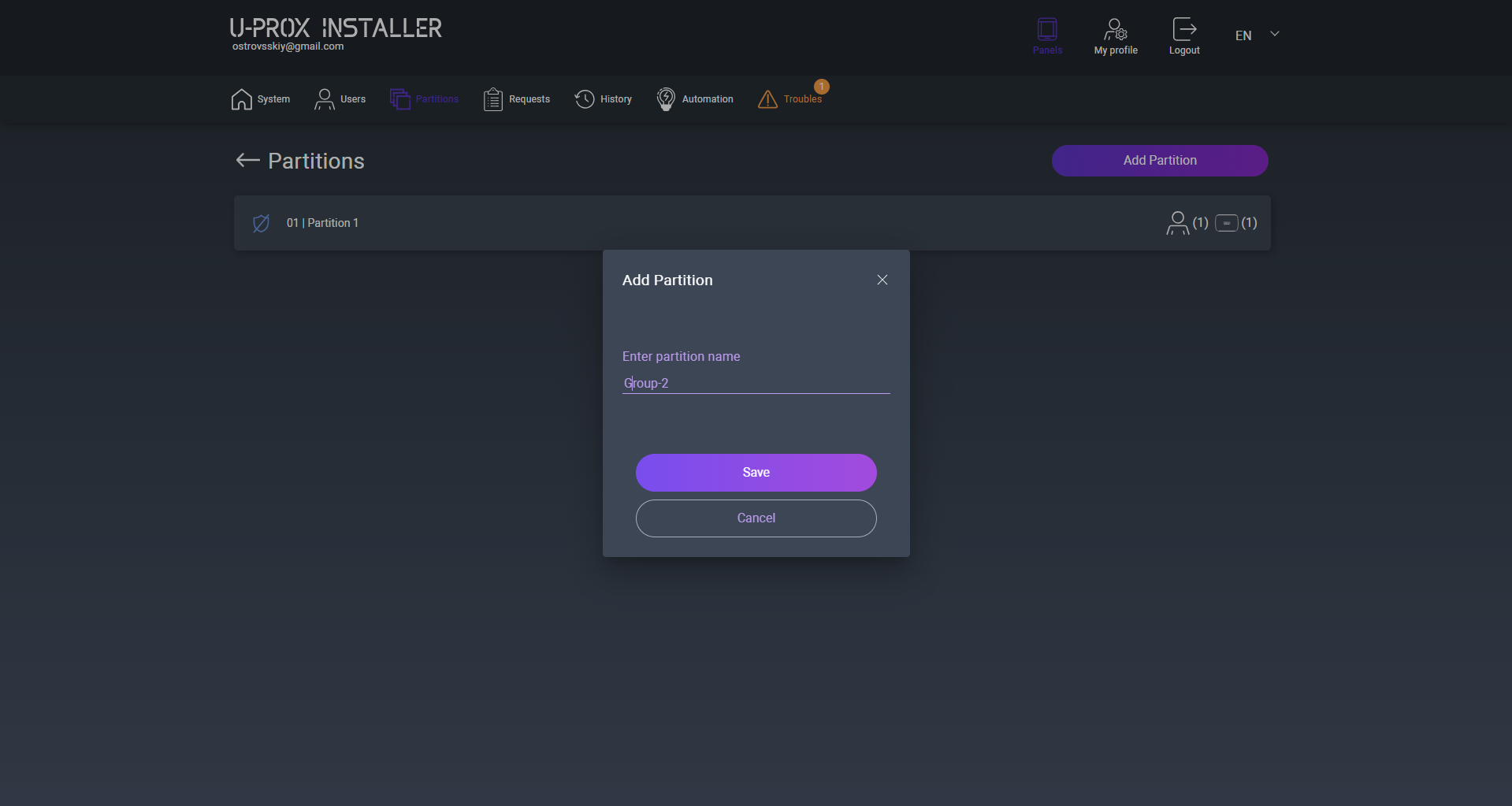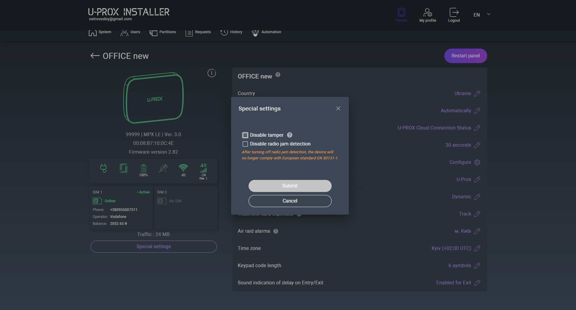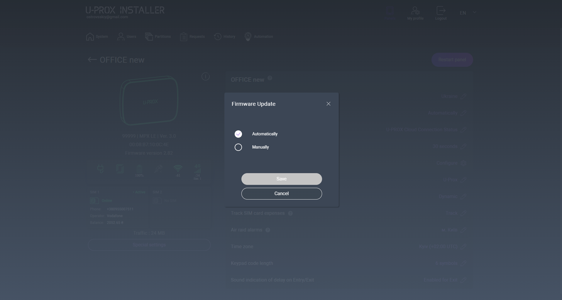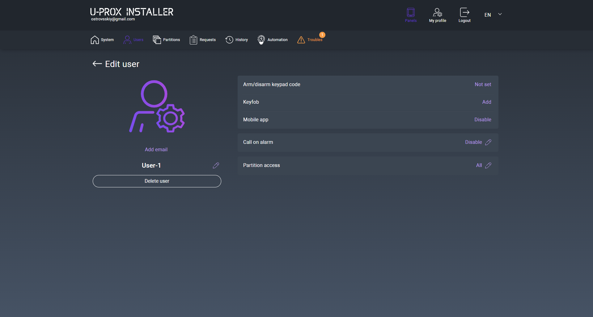 from the U-PROX Installer WEB web portal or the U-PROX Installer mobile application.