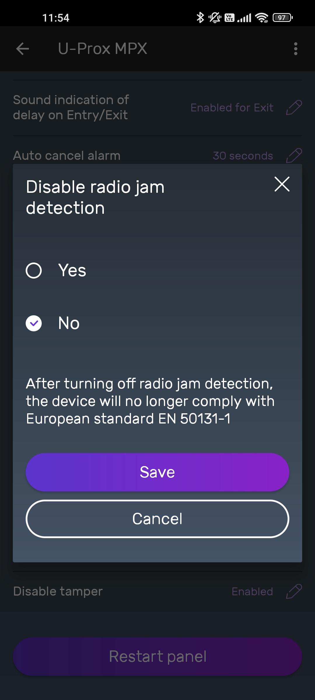 If you try to “jam” or somehow block the communication channel, U-PROX will send a signal informing you.