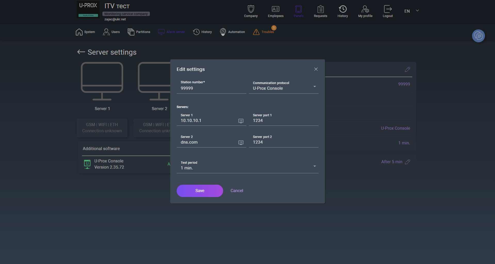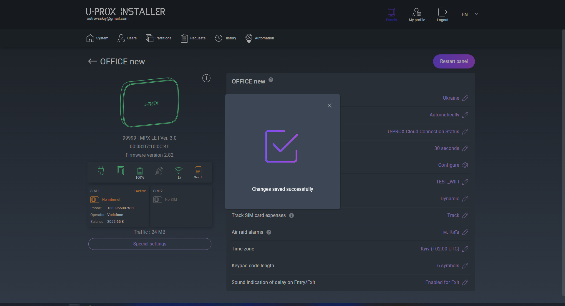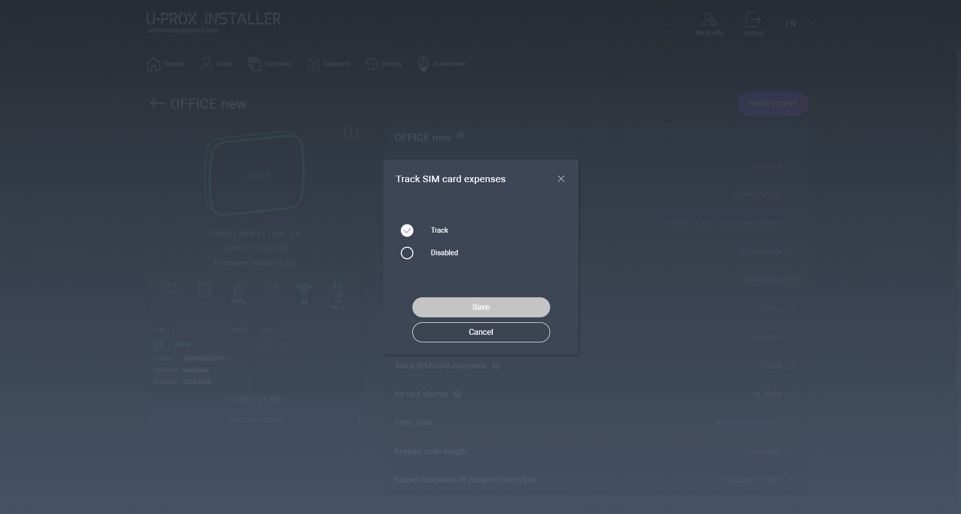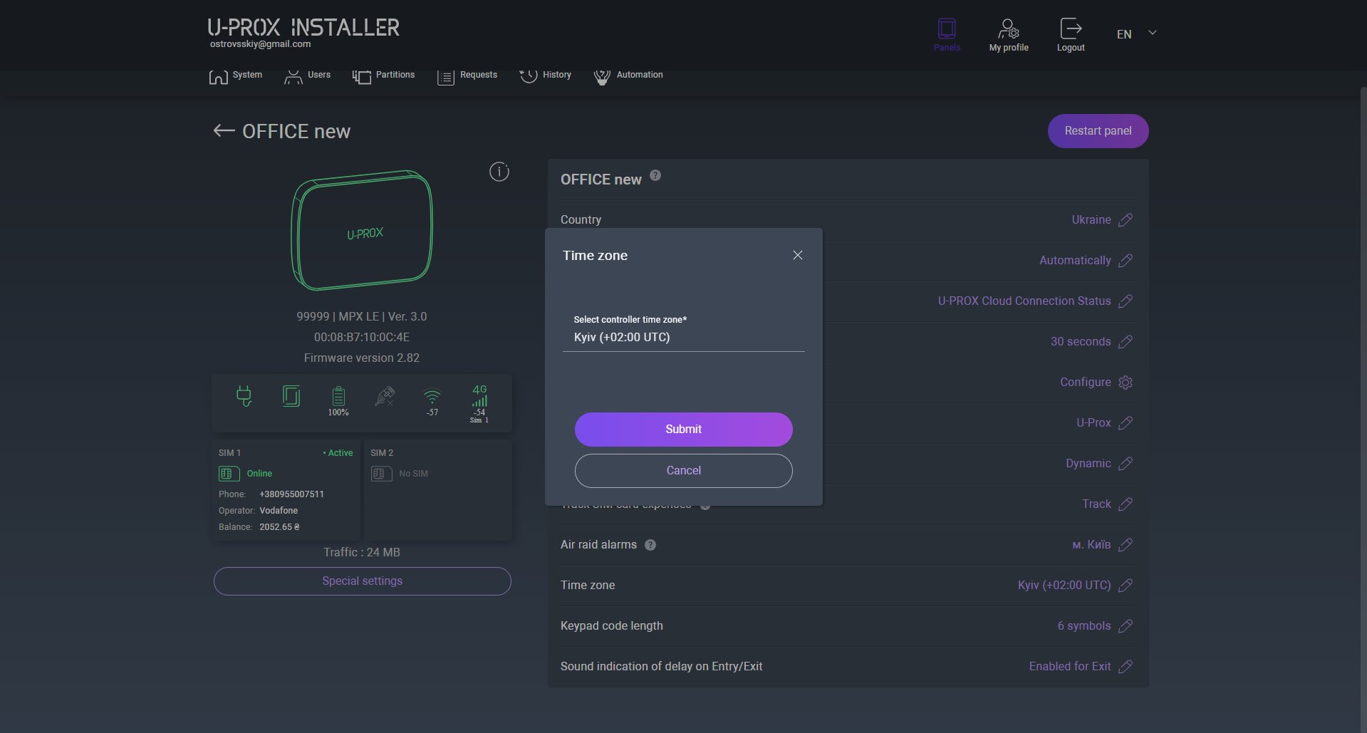 The U-PROX Cloud service is required to interact with the security system and its maintenance, to receive new software versions of both the security center itself and to