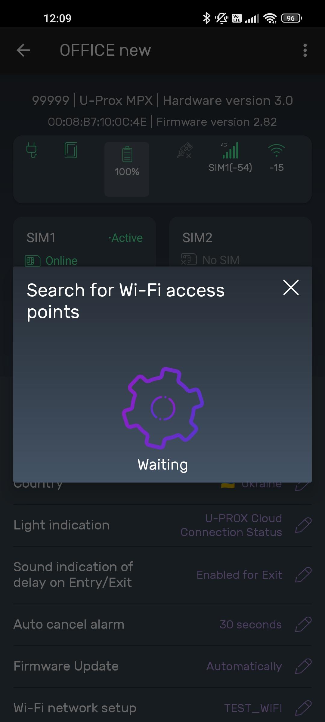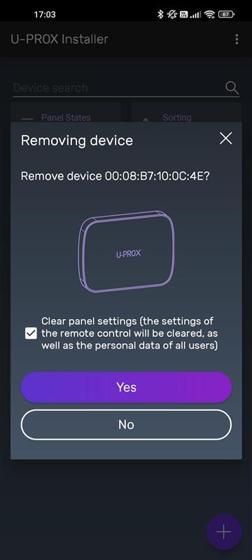 BEFORE PERFORMING THIS STEP, THE DEVICE MUST BE CONNECTED TO U-PROX CLOUD.