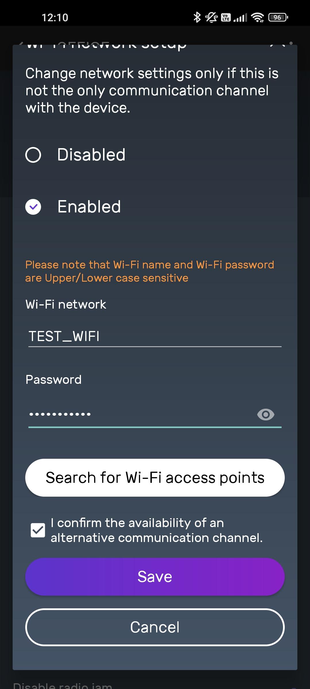 Computer network - Wi-Fi 2.4GHz, LTE modem for backup. For initial setup - BLE 2.4GHz Two-way encrypted communication, encryption key - 256 bits |