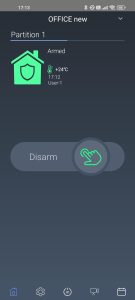 To cancel the alarm, it is enough to disarm the group, or press the “Arm” and immediately “Disarm” buttons