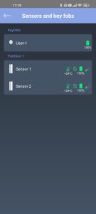 2. “Sensors and key fobs” – information about devices in the system and their status. Also provides the ability to view statistics on temperature changes and battery discharge. From this menu you can disable (skip or “bypass”) a faulty sensor.