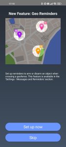 4. “Notifications and reminders” – configuration of notifications and reminders about arming and disarming according to geolocation