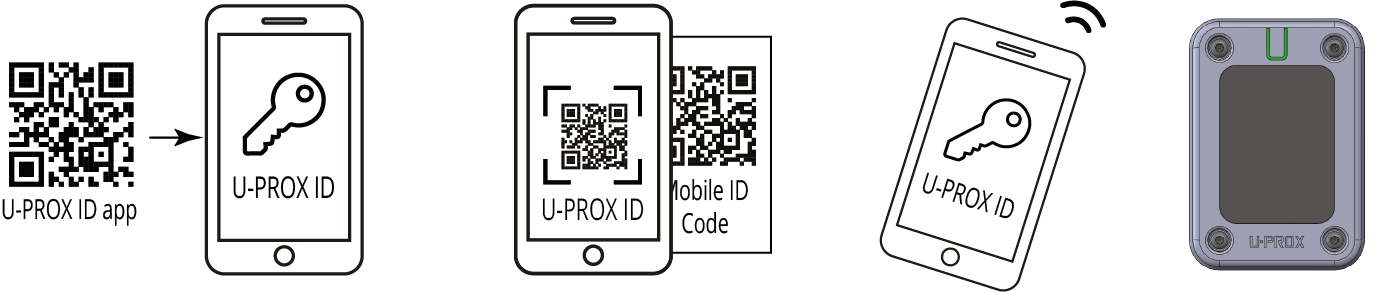 In conjunction with the U-PROX ID application and mobile identifiers U-PROX IDs allow any access control system to use smartphones as access system credentials.