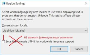 - Для коректного відображення в регіональних налаштуваннях мають бути вказані однотипні налаштування, або сумісні.
